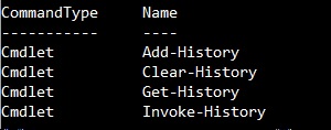 As we can see, there is a series of cmdlets that can help us explore the cmdlet history in PowerShell. First, let’s see what we can do with Get-History: