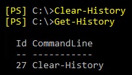Now if we wanted to flush the cache of what was run in our current PowerShell window, we can run the Clear-History cmdlet. Then we can run Get-History to verify no history is left: